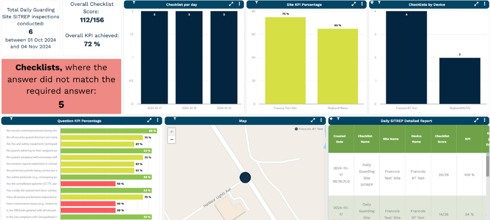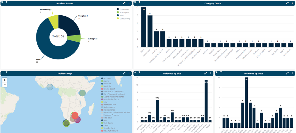 A security company managing patrols and incident reports across multiple sites can use a single dashboard to view the status of active patrols, track response times, and monitor incident trends in real-time.